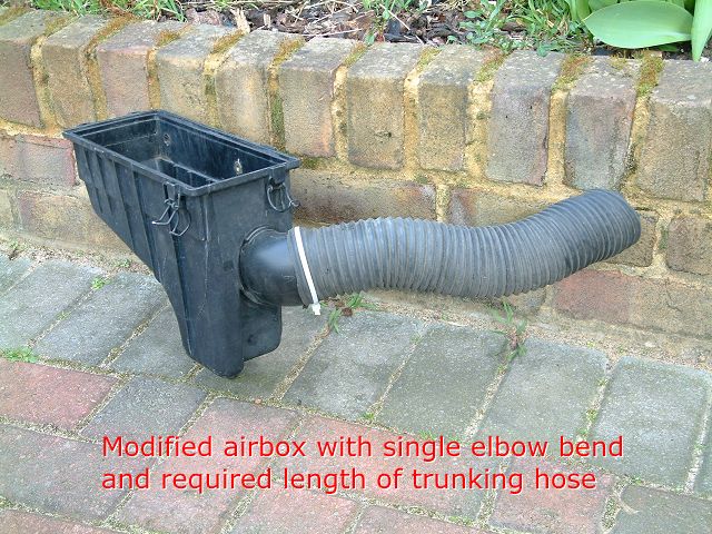 Socket set: 6mm, 10mm, 15m, 17mm Fitting EBD 4-2-1 Exhaust Manifold1st August 2001Just picked up this thread after being out of the office today... I bought an EBD manifold from Geary last weekend and had it fitted my my local mechanic yesterday. It's the latest EBD model with a double slip joint so combat the engine movement problems. The primaries are slightly (1") shorter and the 2-1 section is quite different where the slip joint is located. I don't have the car back yet (other stuff needs doing) but I got a quick report on how it went. The heat shield and oil filter needed to come off for fitting and the engine had to be lifted slightly (just by loosening two of the mounts) to allow the manifold to meet the engine. I wish I could have shown him this thread before he started - might have saved me some labour!!! There's no heat wrap so I'll have to see how close the manifold gets to the alternator. Mine's only a standard car with air filter and cat-rep-pipe so hopefully it won't be too hot? I'm gonna try to get a quick drive tomorrow morning if he's not working on it. The lambda sensor came out OK but stripped the old manifold thread on the way out. The lambda sensor on the END manifold is positioned about 4" away from the cat end which meant they had to re-wire and re-route the sensor cable. Sounds like I'm looking at 5+ hours labour (thank god it isn't at Lotus dealer prices!). My mechanic is located in Stevenage and is happy to do the job again. I'll try to get a fixed price for fitting if anyone is interested. Standard Airbox Trunking Mod14th August 2001My standard S1 still runs the original airbox with a K&N panel filter. I recently discovered at Emerald that the cold air hose was hanging down into the engine bay and not fixed to the side air scoop. So last week I set about to fix it. I realised that there was no way I would be able to get a couple of tie wraps on the end of the hose without removing the airbox. So I did that and gave it a good clean at the same time. With the airbox removed I could see that there was a much more direct route to the air scoop than was being used. The original configuration of the air hose was to leave the airbox at 90° then turn upwards at 90° to the top of the engine bay at which point it turns 180° around the black metal tube before heading towards the air scoop. I'm at a loss to understand why it takes such a convoluted route. It looked to me that I could take an almost direct path from the first 90° bend straight to the air scoop. But when I offered this up there was too much hose and it just bent itself into a long curve. So I chopped about 4" from the end of the air hose and tried again. I could probably lose another inch but I didn't want to leave myself too short. So I hooked a couple of cable ties to the end of the hose, attached it to the air scoop and fixed the airbox back in place. And it seems to have made a noticable difference. It certainly sounds a bit louder and I reckon its made a modest power improvement (but that could just be the noise). Either way, I feel happy that I've improved the path of airflow from the scoop to the airbox. 13th May 2002 It's quite easy to re-route the standard airbox trunking more directly and cut off about half of the trunking hose. The entry to the airbox has some plastic tubing elbow bend that points upwards. If you take a hacksaw to this and cut back to about 45-degrees then you can direct the trunking hose underneath the rollover bar strut and in an almost straight line to the intake scoop. Be careful how much of the elbow bend you cut off. The internal diameter increases as it gets nearer the airbox so if you remove too much the original 60mm trunking hose will not fit over the elbow bend. Interestingly, as the elbow bend meets the airbox, the internal diameter is equivelant to 67mm (it's an oval). That's an increase of 32% of the cross-sectional area over the trunking hose itself. Pictures here: